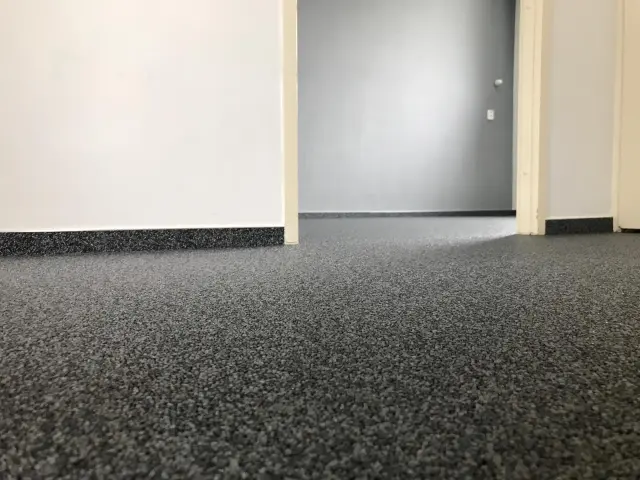 Bevor wir mit der Verlegung Ihres Steinteppichs für innen starten, kontrollieren wir den Untergrund und bereiten diesen, unter anderem durch Reinigen, Schleifen und Ausbessern, vor. Wir grundieren und tragen danach den Steinteppich auf. Zudem empfehlen wir eine transparente Schutzschicht, um die Fläche resistenter gegenüber äußeren Einflüssen werden zu lassen. Am Ende kümmern wir uns um die Details, wie Sockel, Kanten usw..
